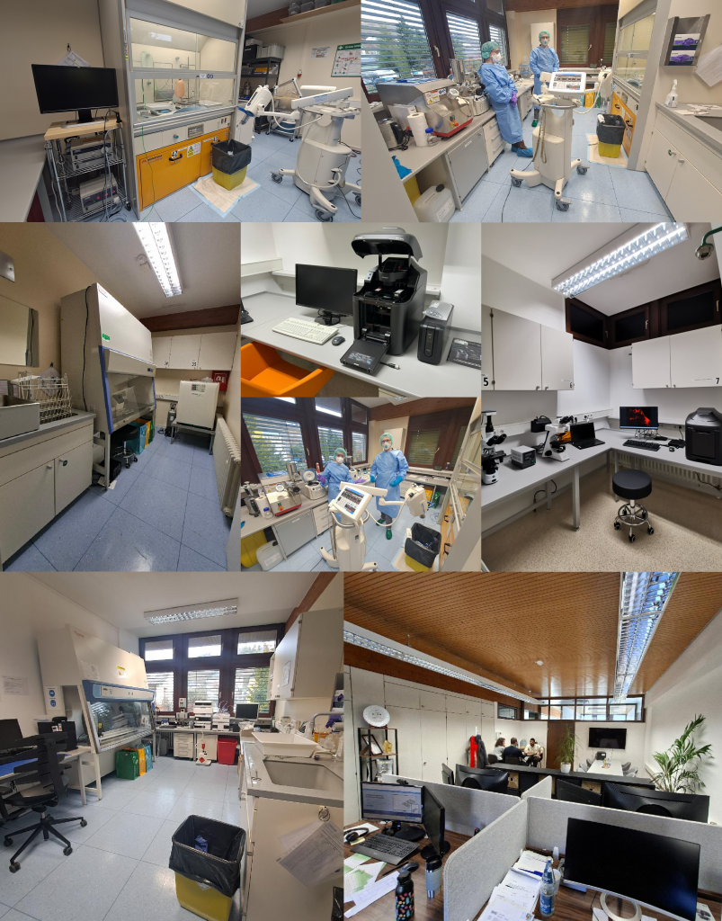- A Biology Laboratory supporting cell culture, automated cell counting, robotized 3D multichannel fluorescence microscopy, and functional assays performed in vitro and ex vivo.